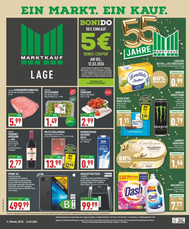 BoniDo bei MarktkaufDonnerstag ist wieder BoniDo.🥳 Wir schenken Dir am 12.03.2026 einen 5€ Bonus-Coupon ab…» Mehr erfahren
